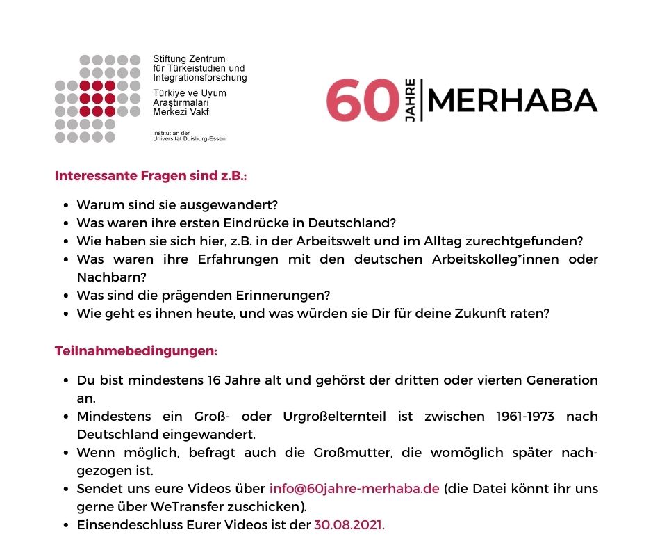 Weitere Informationen erhalten Sie bzw. die Interessierten auf unserer Homepage www.60jahre-merhaba.de. Für Rückfragen stehe ich Ihnen gerne zur Verfügung und bedanke mich im Voraus für Ihre Unterstützung.