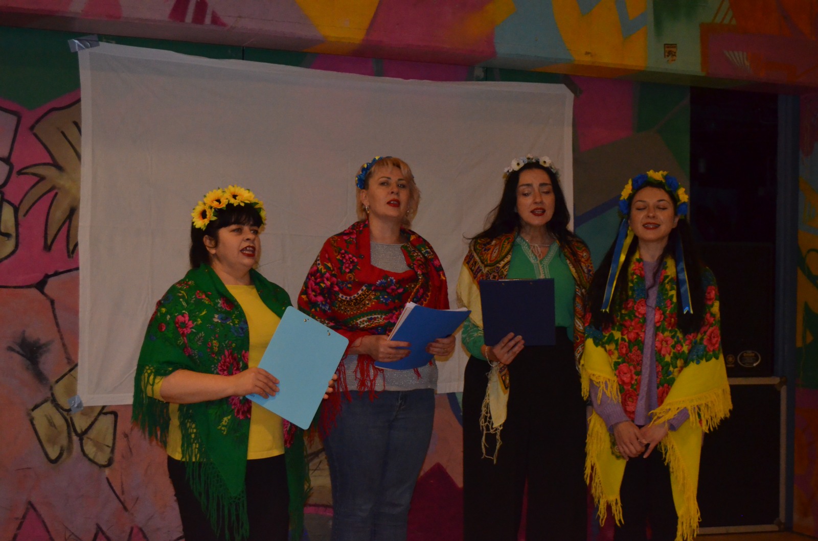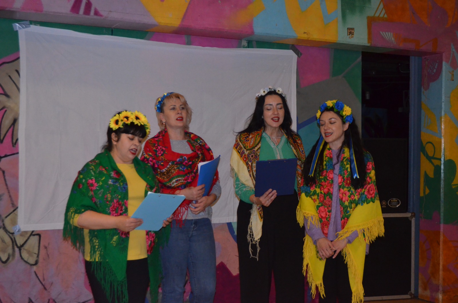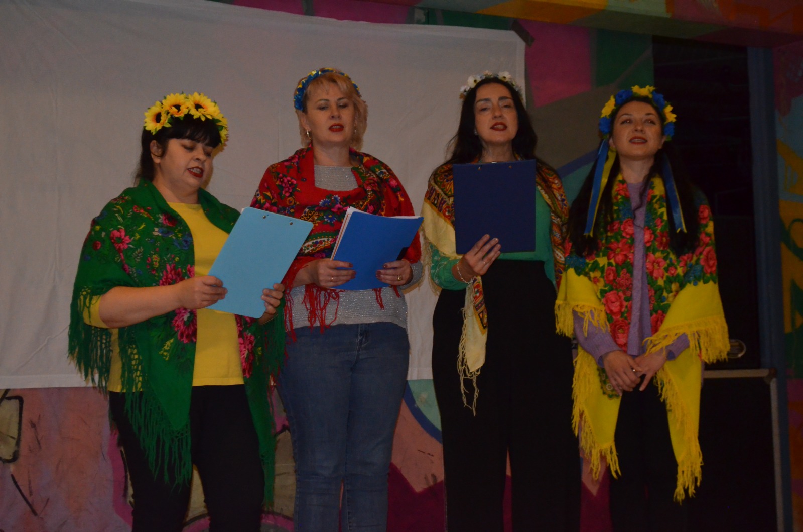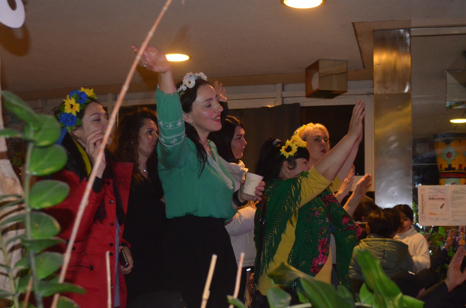 Der ukrainische Frauenchor, in Landestracht, singt a capella über die Schönheit der Heimat und die Hoffnung auf Frieden. Maria Sandulyak bietet solo eine ukrainische Volksweise "Hey sokoly" und "Let it snow" dar. Beeindruckend! Die junge Viktoriia Levchenko (Vika) verzaubert das Publikum mit ihrer virtuosen Spielweise und "Jingle Bells" auf dem Akkordeon.