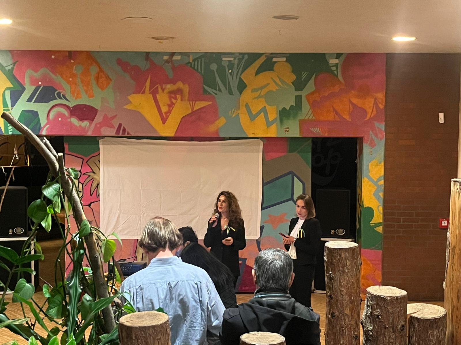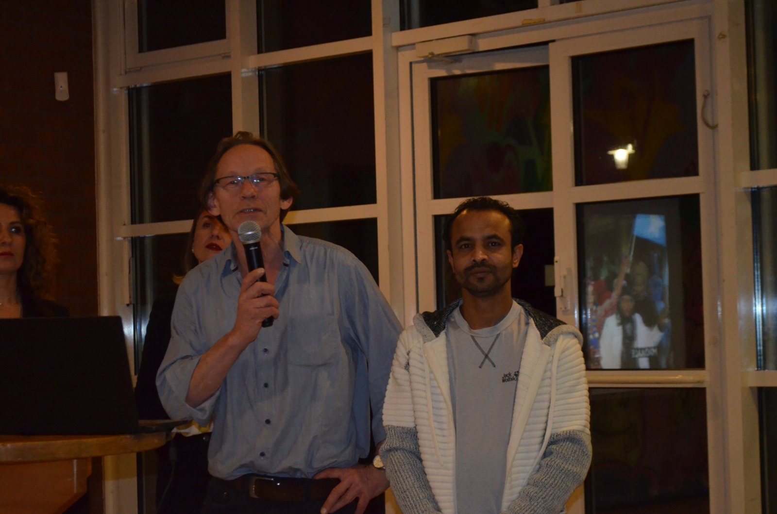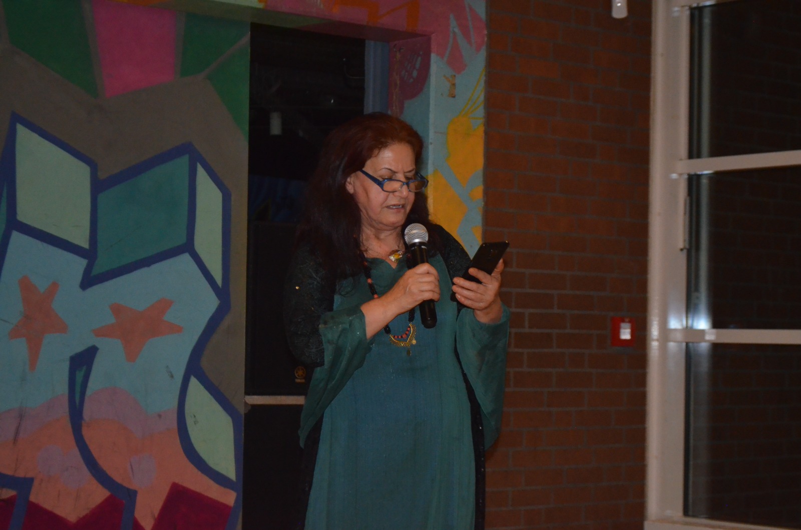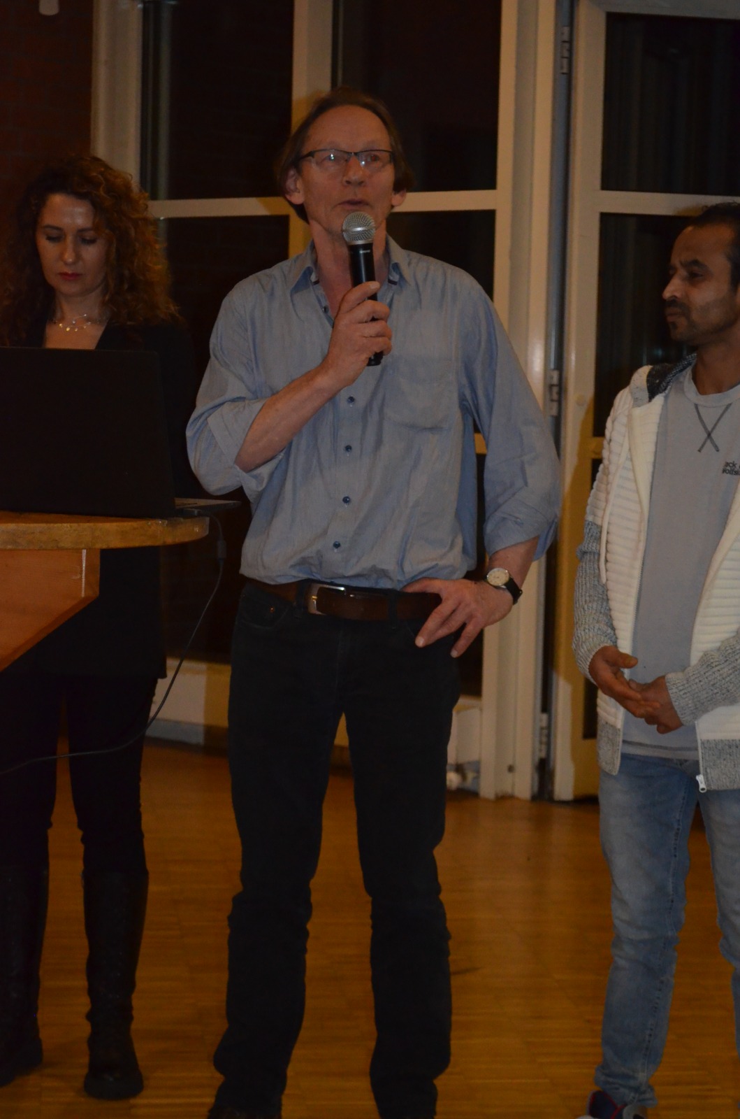 Fener Abdel Rahman vom Kurdisch – Syrischen Hilfsverein für Flüchtlinge e.V. und Roonak Aziz halten in Kurdisch und Deutsch Ansprachen zur Rolle der kurdischen Kultur.