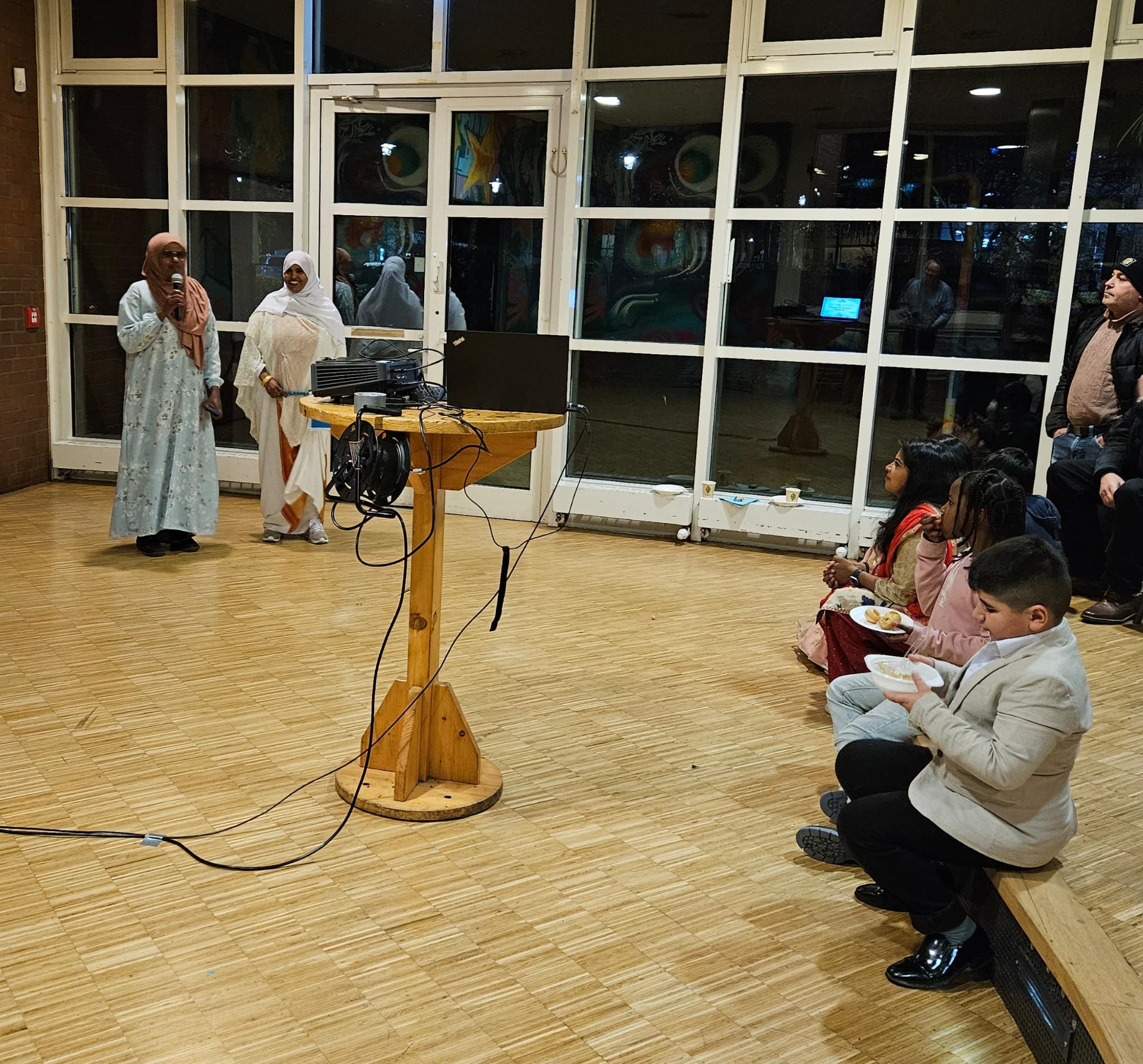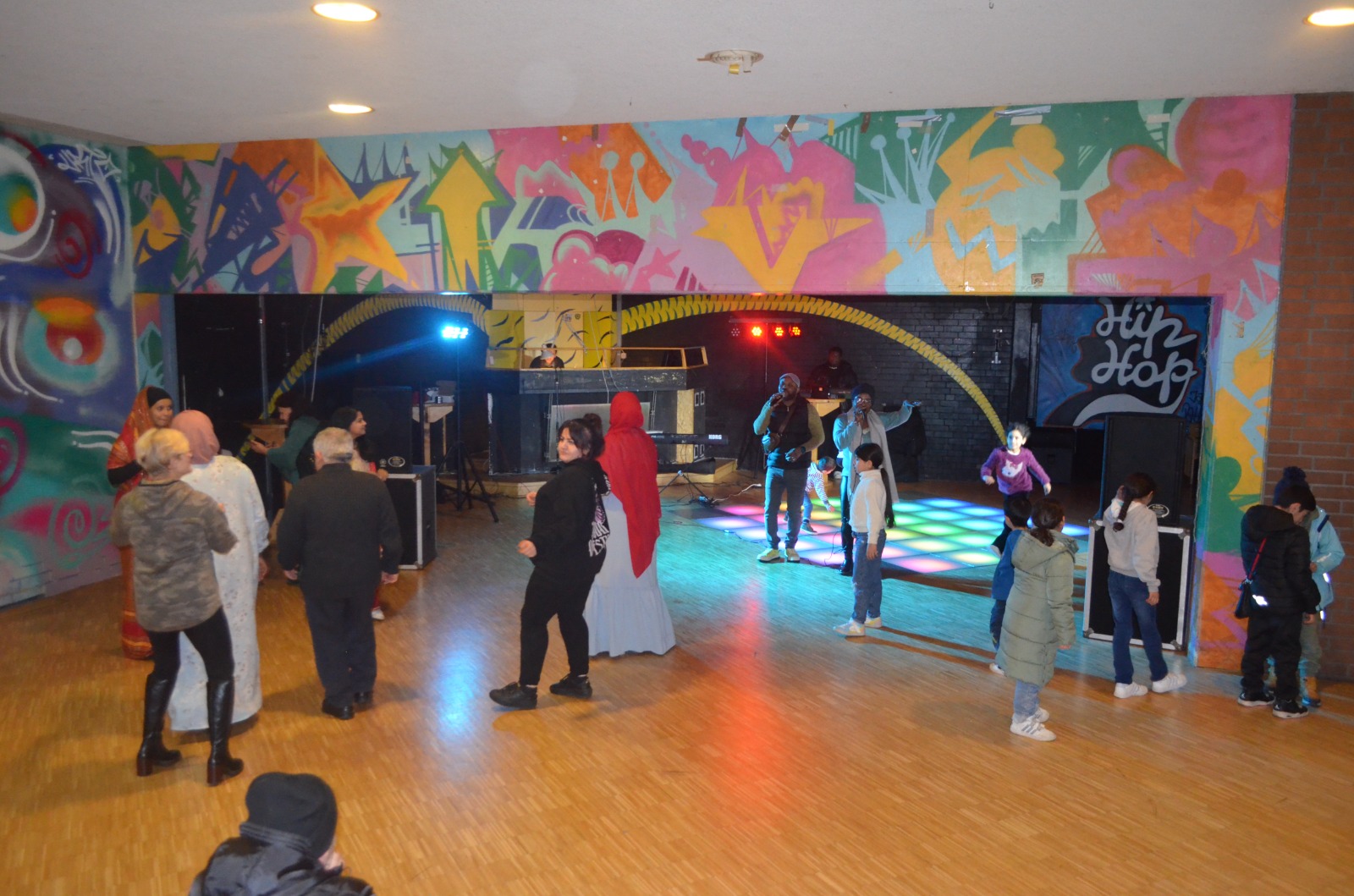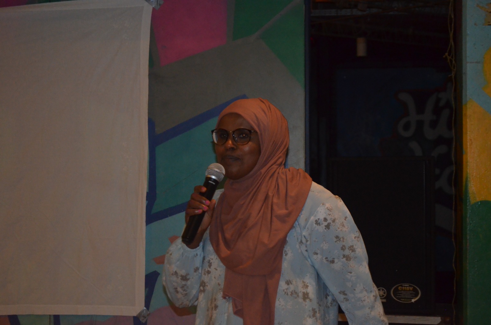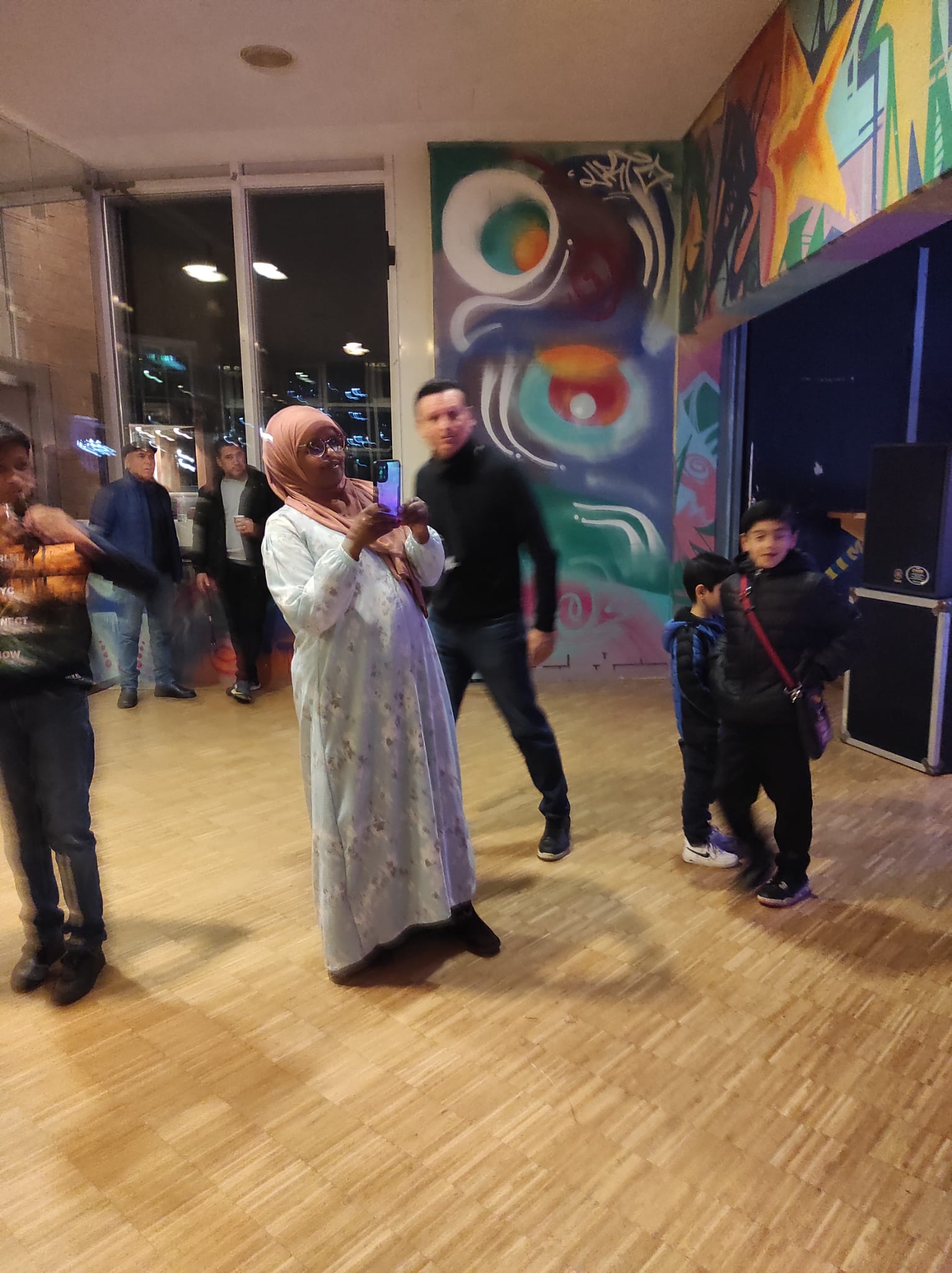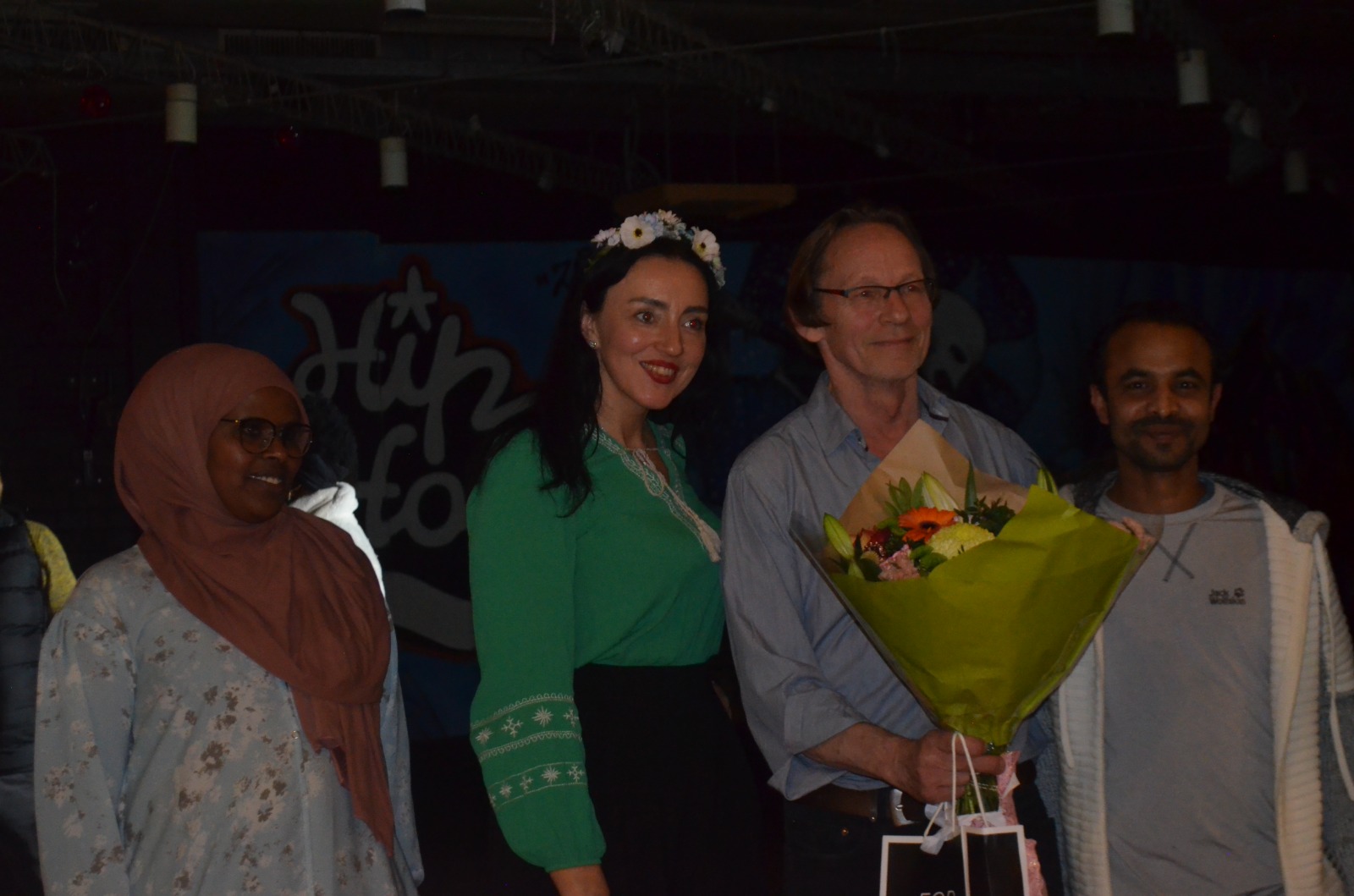 Sarah Egal und schön gewandete Tänzerinnen aus Somalia tanzen voller Energie und Lebensfreude zur Musik aus Somalia. Sarah hält eine kleine Ansprache über die Freude, auf einer gemeinsamen Feier so viele Kulturen kennenzulernen!
