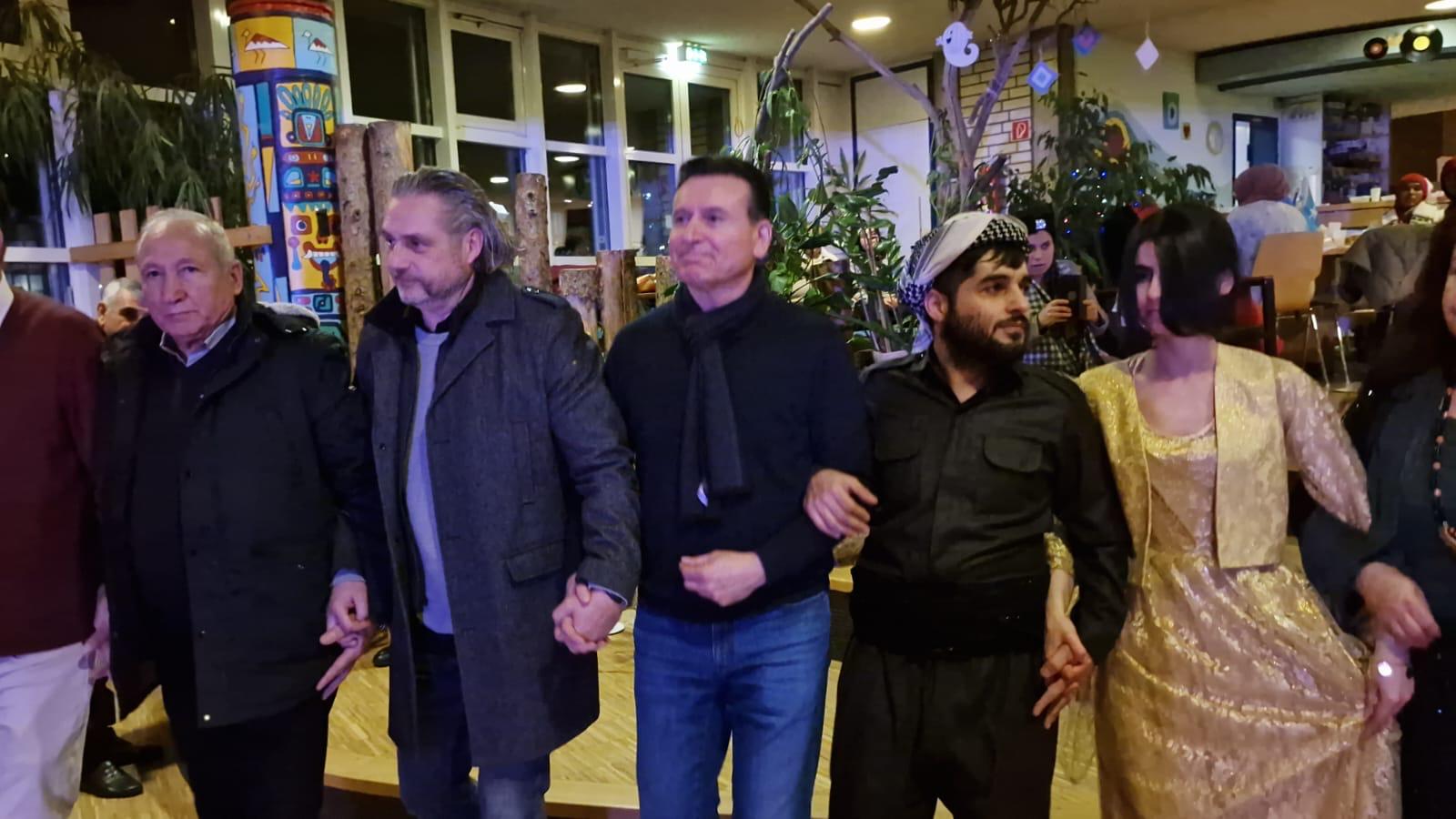 Sardar Swani am Keyboard & Sängerin Rooonak bieten eindruckvolle Volkslieder aus ihrer Heimat Kurdistan und sorgen für die musikalische Begleitung für unsere kurdischen Freunde und Freundinnen aus dem Irak und aus Syrien, die das Tanzbein zum Rundtanz "Govend" schwingen. Der aufmerksame Zuschauer entdeckt in ihren Reihen Hauptkommissar Gerd Königs, der ausnahmsweise hier mal für ein wenig Ordnung sorgt!
