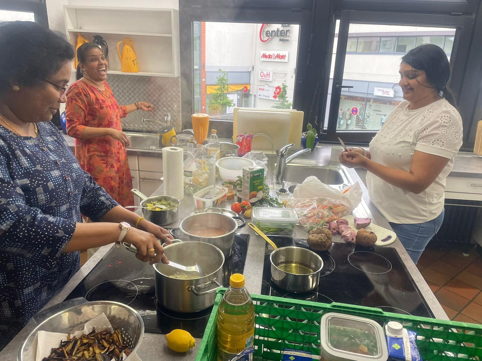 Rund 35 tamilische Kochkurse fanden in der Lehrküche der Familienbildungsstätte (Wilhelm-Wester-Weg 1, Düren) statt. Teilnehmende lernten nicht nur Rezepte kennen, sondern auch die kulturellen Hintergründe. Beliebte Gerichte waren: