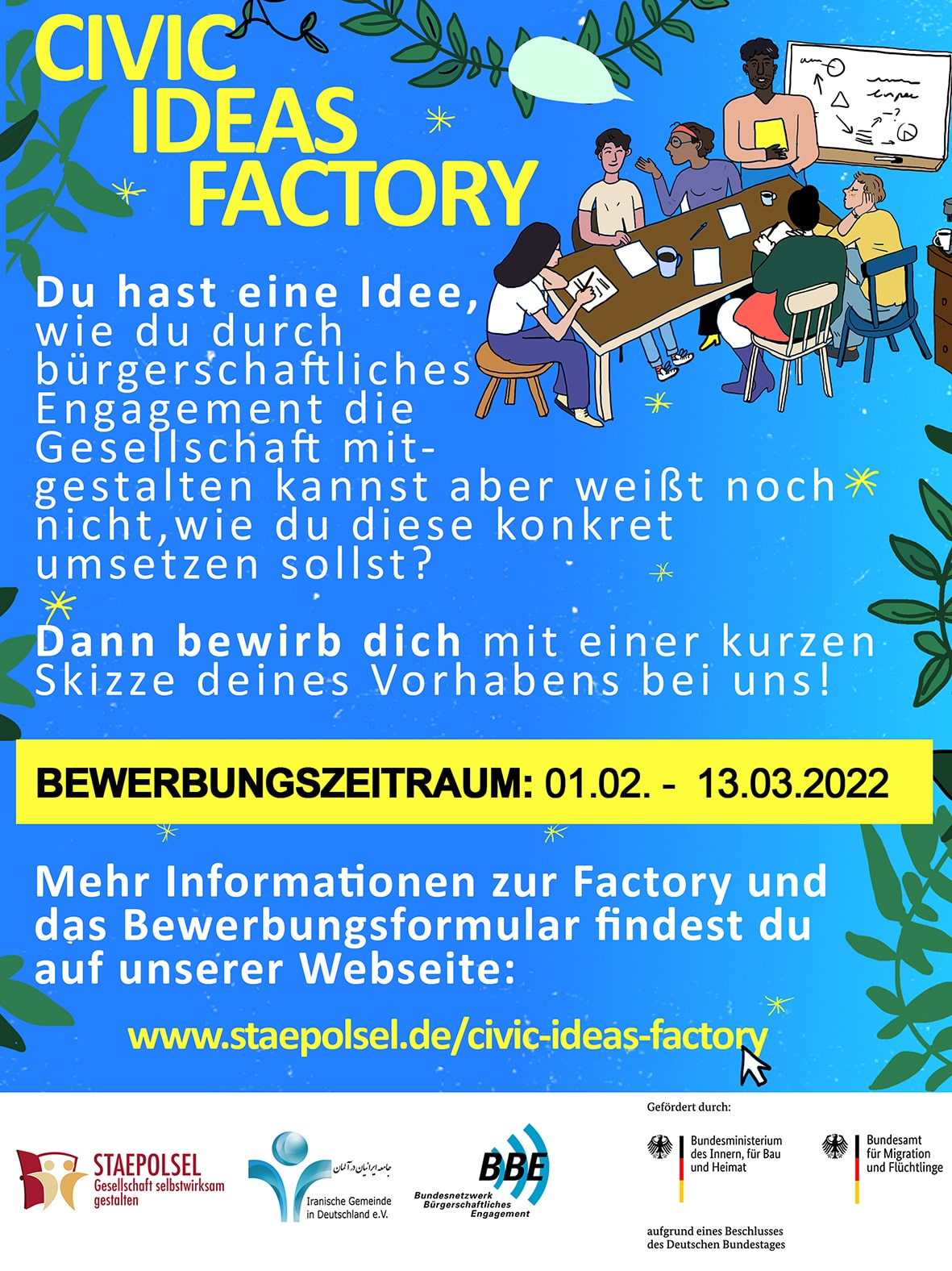 Mehr Informationen zum Bewerbungsablauf und zum Projekt findet ihr hier: https://www.staepolsel.de/civic-ideas-factory"