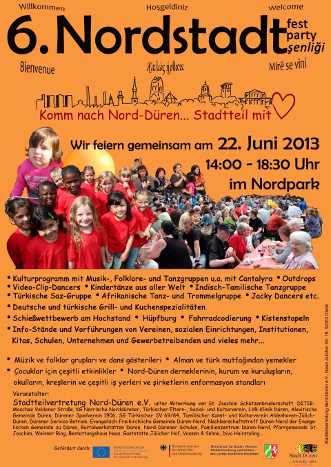 wir möchten Sie im Namen der Stadtteilvertretung e.V. herzlich zum 6. multikulturellen Nordstadtfest mit inte-grierter Leistungsschau und Info-Börse in Nord-Düren einladen