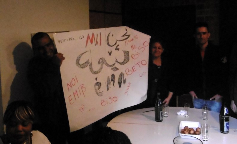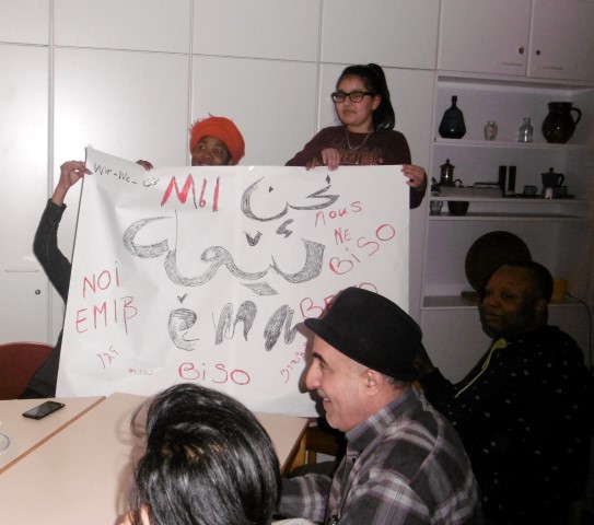 Das ist Kongolesisch/Lingala und bedeutet: "wir". Ebenso wie nahnu (Arabisch) oder Worte in anderen Sprachen, welche die Gruppe auf einem Plakat notierte.