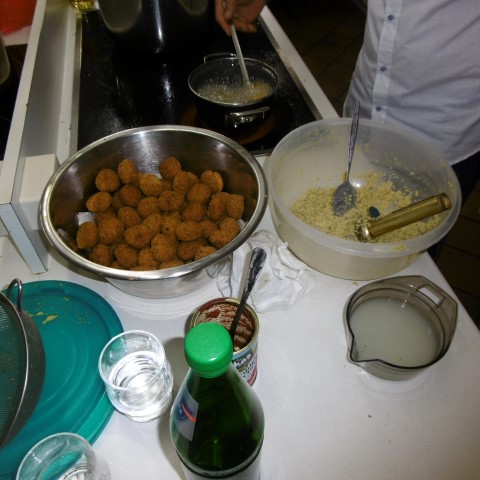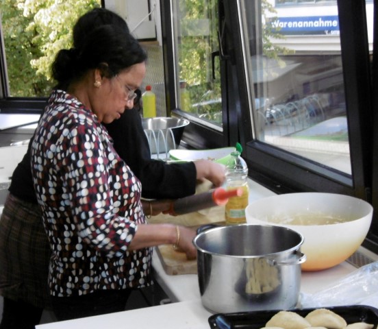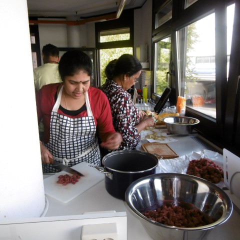Aber auch 2 Flüchtlingsfamilien trugen zum opulenten Mahl bei. Ein typisch kurdisches Gericht, Kube (Grieß im Teigmantel), rundete das reichhaltige Menu ab.