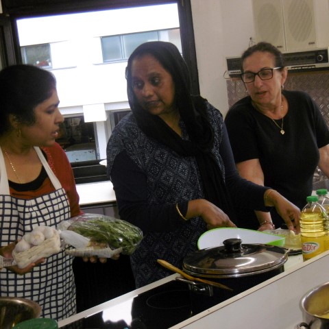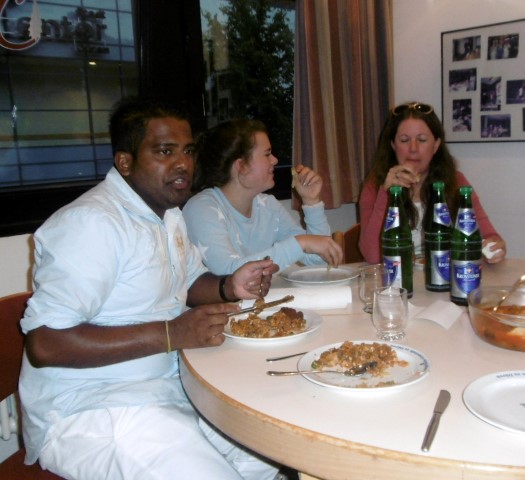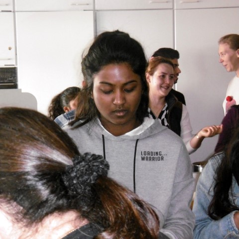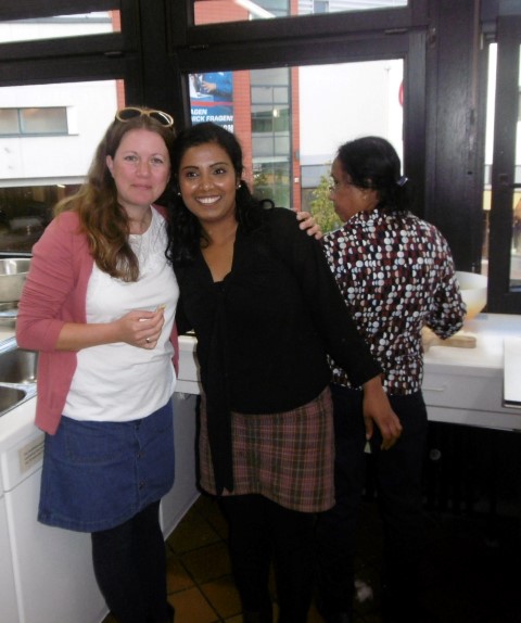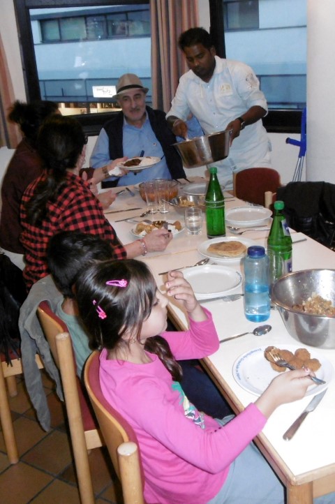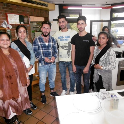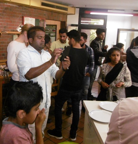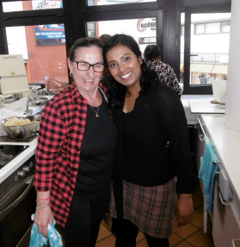 An diesem Samstag-Nachmittag wurde den Flüchtlingen etwas Besonderes geboten: In der Lehrküche wurden Spezialitäten aus dem fernen Sri Lanka serviert. Die “ChefköchInnen“ aus Sri Lanka trugen die typischen scharf gewürzten Speisen der Heimatinsel auf. Schnell füllte sich die Küche mit dem exotischen Duft von Curry, Muskat, Kardamon, Kreuzkümmel, Chili, Zimt, Ingwer und Tamarinden.