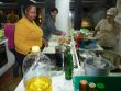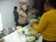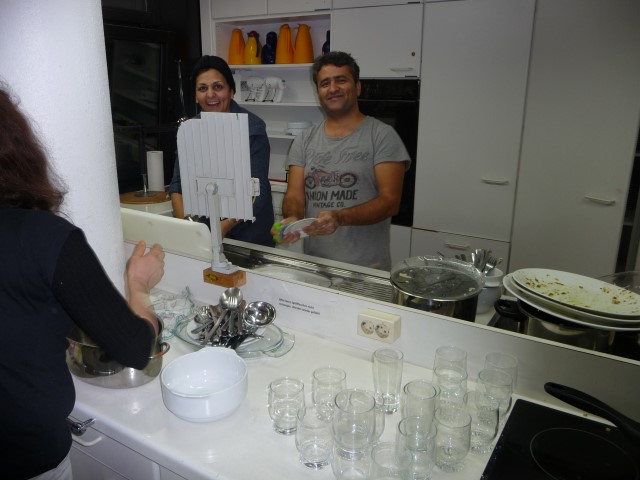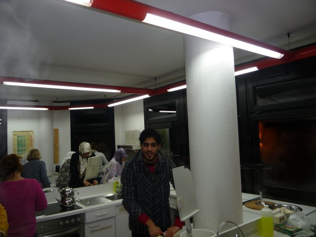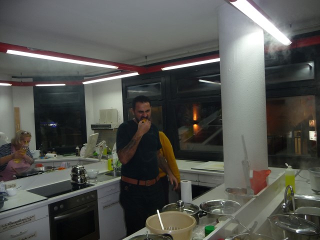 Wegen einer irrtümlichen Doppelbelegung wurde es in der Lehrküche am Donnerstag ein wenig eng: Nicht nur die Köchinnen und Köche vom “Internationalen Kochkurs“ sondern auch die TeilnehmerInnen vom “Deutsch-Türkischen Kochkurs“ standen bereit, um ihre Kochkünste auszuprobieren. Aber man arrangierte sich schnell und im nu fand jeder seinen Platz.