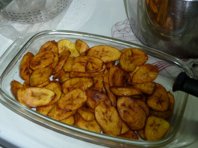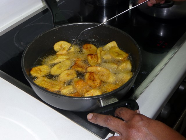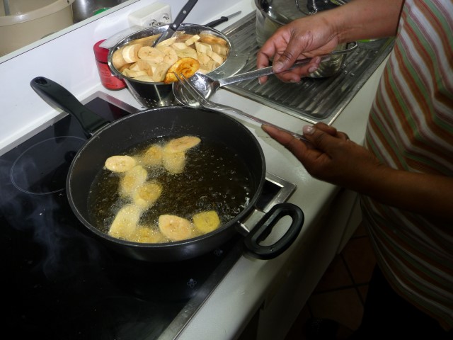 Zum Hauptgang wurden zwei Speisen gereicht: Pangasius Steak und gebratenes Rindfleisch, als Beilage gab es gedämpften Reis, weiße Bohnen in Tomatensauce, Manioko nugba (Maniok), Ndunda (eine schmackhafte Mischung aus blanchiertem Blattspinat, Okraschoten und Auberginen), plantain (in heißem Öl fritierte Bananen) sowie Arachides (Erdnüsse). Werfen Sie doch einen Blick in das beigefügte Rezept und probieren Sie die typisch kongolesische Küche!