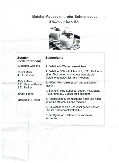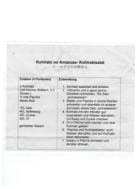“Chefköchin“, Kazue Farber, hatte wieder einmal alles perfekt vorbereitet, inklusive der detaillierten Kochrezepte für ein köstliches 3 – Gänge Menu zum Sattessen für die ganze Familie.