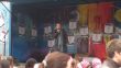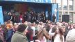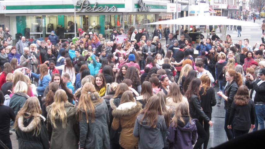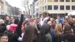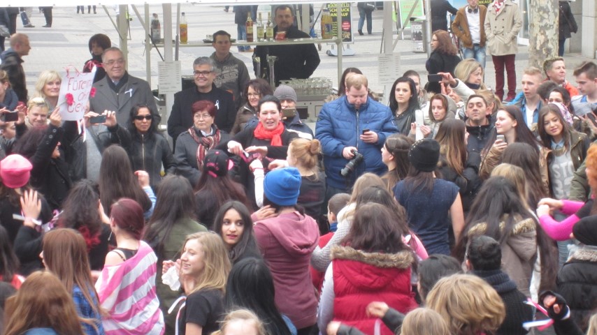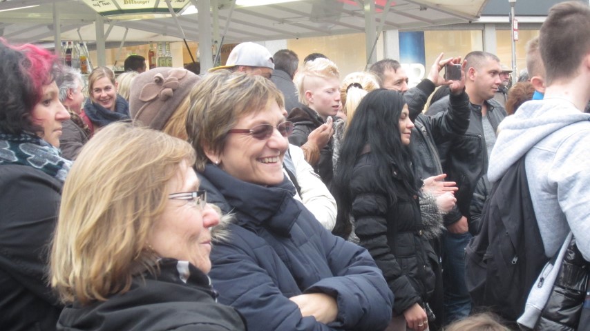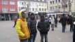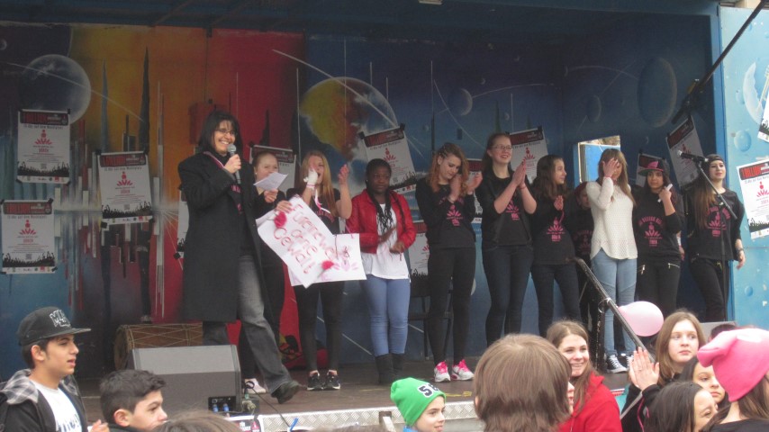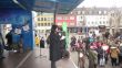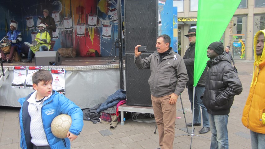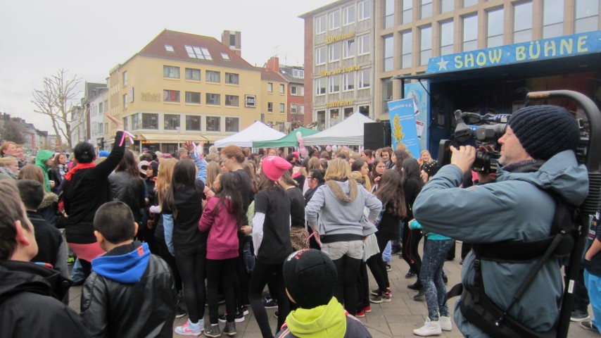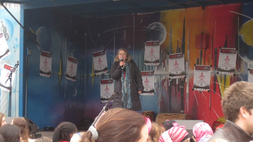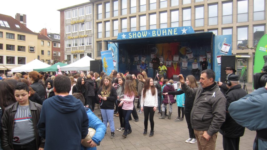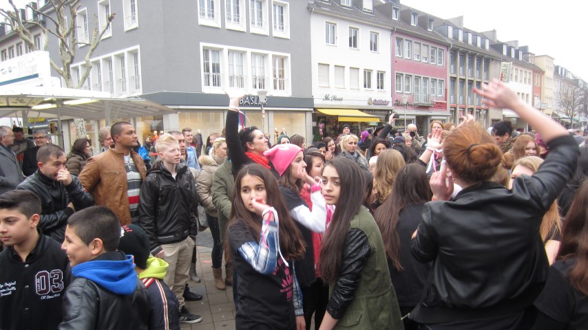 Zum Auftakt sorgt das Trommlerduo Kader Camara für einen gehörigen Energieschub und schon bald sind alle 'in Bewegung'. In verschiedenen Sprachen, polnisch, französisch, bulgarisch,türkisch, englisch, … schleudern die Schülerinnen und Schüler des Burgau-Gymnasiums ihr “Nein gegen Gewalt“ in die Runde und dann springt der Funken über.