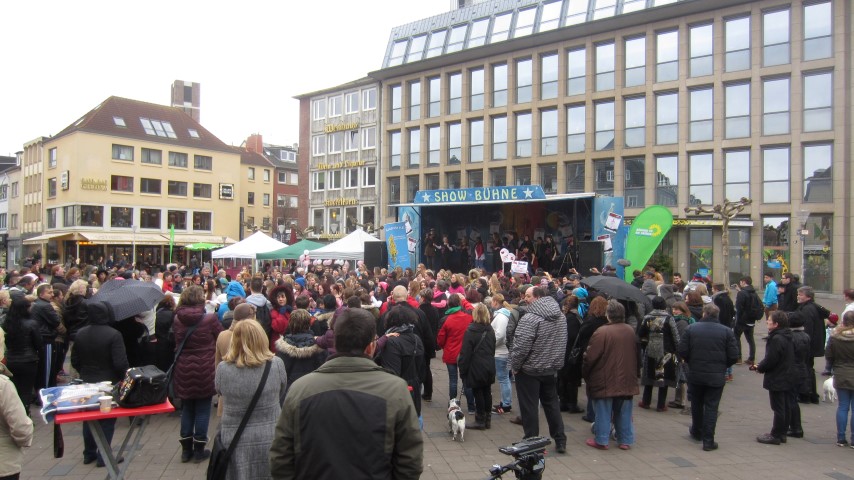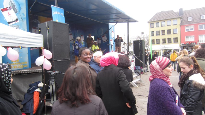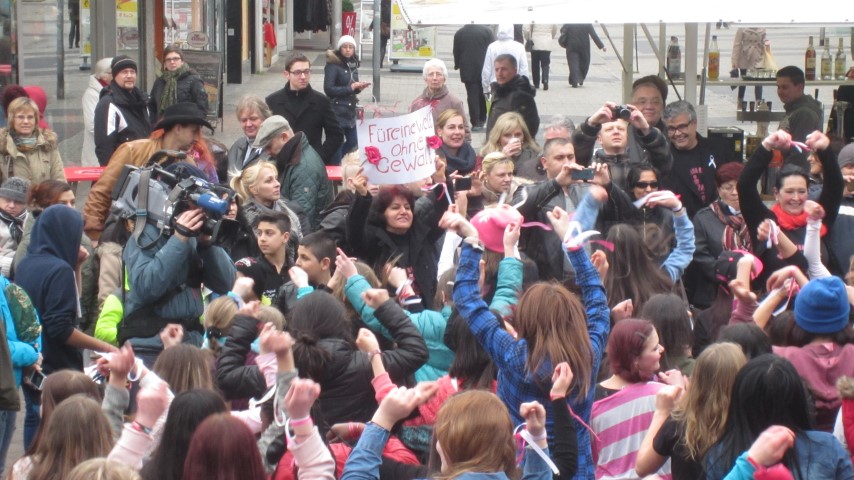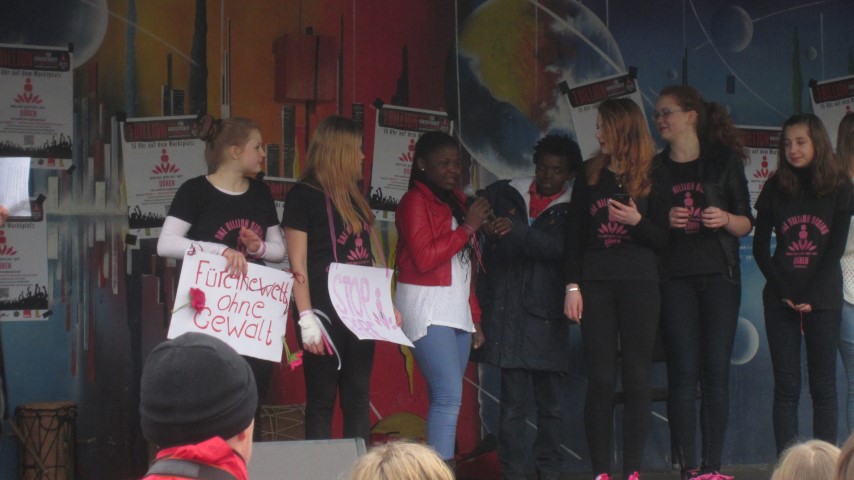 Am Valentintag, 14. Februar, ist der Marktplatz in Düren Treffpunkt für die Kampagne. Der Verein Goldrute e.V. (Migrantinnennetzwerk gegen häusliche Gewalt) organisiert ein stimmungsvolles Programm: