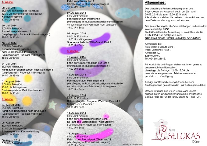 Papst-Johannes Haus, Sommerferienprogramm 2015