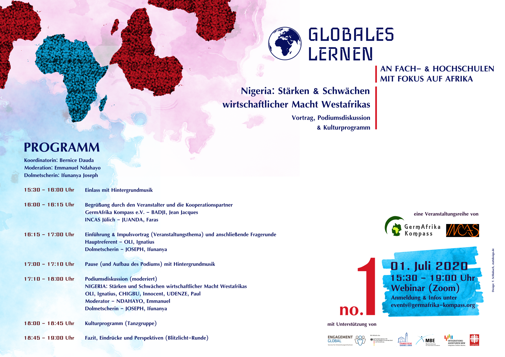 Das Online- Meeting bildet den Auftakt einer Veranstaltungsreihe (Globales Lernen) an Fach- und Hochschulen mit jeweils verschiedenen Schwerpunktthemen. Denn durch die Zuwanderung und Kontakt von Menschen aller Welt sowie universitären Einrichtungen als Knotenpunkt der gegenseitigen Begegnung, sehen wir hier ein großes Potenzial, mit diesem Projekt ein besseres Verständnis für Lebensrealitäten in afrikanischen Staaten und Deutschland zu fördern. Die zunehmende Globalisierung auf ökonomischer, ökologischer, sozialer, politischer und kultureller Ebene bedingt immer mehr auch eine gemeinsame Verantwortung und weniger Abgrenzung. Gesellschaften verändern sich schnell. Die Forschungs- und Lehreinrichtungen sollten einen wichtigen Beitrag zur Aufklärungsarbeit hinsichtlich dieser Veränderungen leisten. Mit dieser Veranstaltungsreihe wird ein Beitrag zu dieser Aufklärungsarbeit mit Fokus auf den entwicklungspolitischen Austausch geleistet.