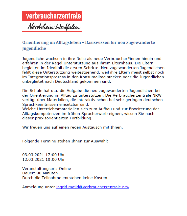 Kostenlose Fortbildung der Verbraucherzentrale NRW